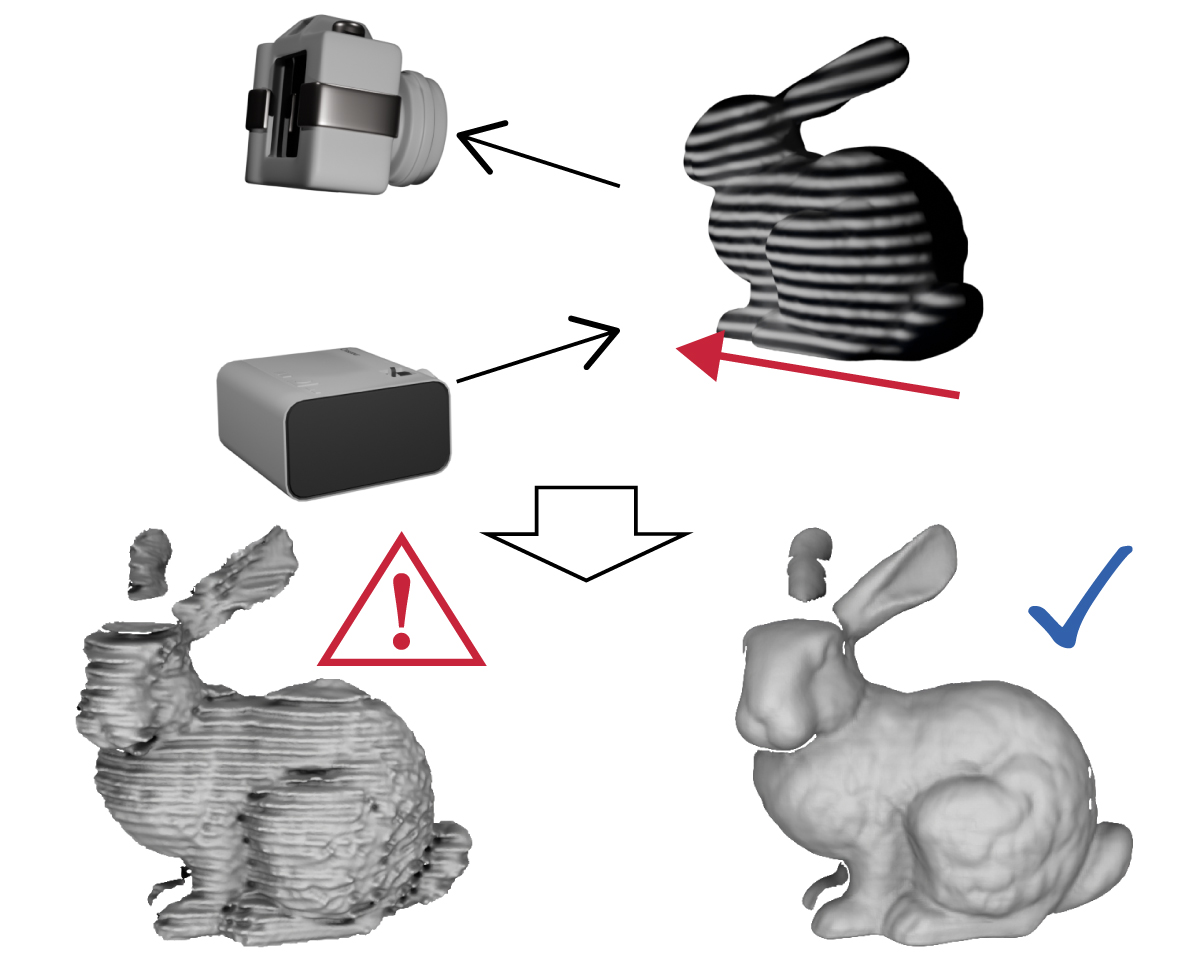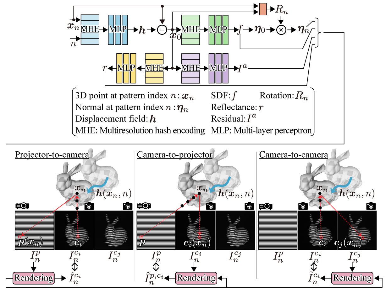 - Yuki Urakawa, Yoshihiro Watanabe: Neural Inverse Rendering for High-Accuracy 3D Measurement of Moving Objects with Fewer Phase-Shifting Patterns, International Conference on Computer Vision (ICCV), 2025. [Paper]